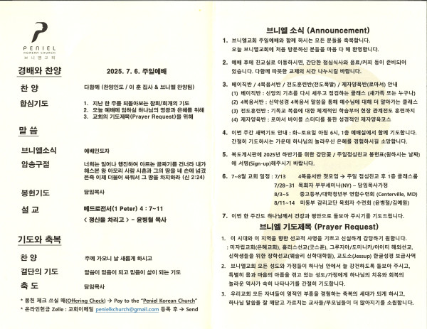 2025년 7월 6일 주보 페이지 정보 작성자 매릴랜드브니엘교회 댓글 0건 조회 305회 작성일 25-07-06 13:44 목록 본문 2025년 7월 6일 주보 이전글2025년 7월 13일 주보 25.07.14 다음글2025년 6월 29일 주보 25.06.29 댓글 0 댓글목록 등록된 댓글이 없습니다. 목록