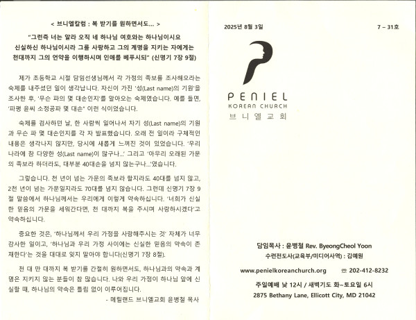 2025년 8월 3일 주보 페이지 정보 작성자 매릴랜드브니엘교회 댓글 0건 조회 260회 작성일 25-08-05 17:15 목록 본문 2025년 8월 3일 주보 이전글2025년 8월 10일 주보 25.08.10 다음글2025년 7월 27일 주보 25.07.28 댓글 0 댓글목록 등록된 댓글이 없습니다. 목록