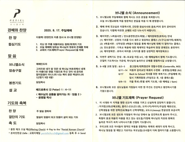 2025년 8월 17일 주보 페이지 정보 작성자 매릴랜드브니엘교회 댓글 0건 조회 251회 작성일 25-08-17 17:50 목록 본문 2025년 8월 17일 주보 이전글2025년 8월 24일 주보 25.08.24 다음글2025년 8월 10일 주보 25.08.10 댓글 0 댓글목록 등록된 댓글이 없습니다. 목록