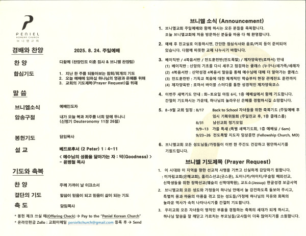 2025년 8월 24일 주보 페이지 정보 작성자 매릴랜드브니엘교회 댓글 0건 조회 199회 작성일 25-08-24 17:00 목록 본문 2025년 8월 24일 주보 이전글2025년 8월 31일 주보 25.09.01 다음글2025년 8월 17일 주보 25.08.17 댓글 0 댓글목록 등록된 댓글이 없습니다. 목록