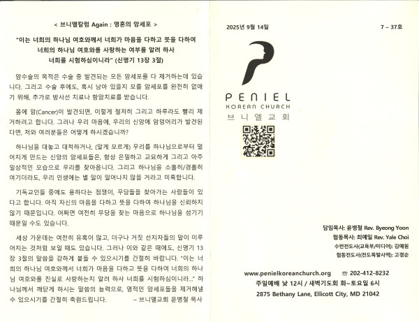 2025년 9월 14일 주보 페이지 정보 작성자 매릴랜드브니엘교회 댓글 0건 조회 138회 작성일 25-09-15 04:50 목록 본문 2025년 9월 14일 주보 이전글2025년 9월 21일 주보 25.09.21 다음글2025년 9월 7일 주보 25.09.08 댓글 0 댓글목록 등록된 댓글이 없습니다. 목록