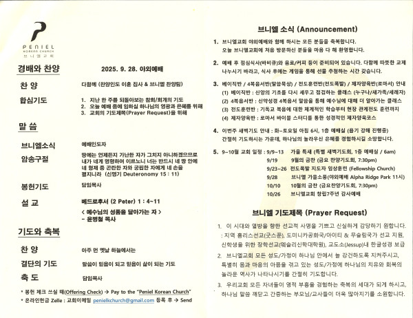 2025년 9월 28일 주보 페이지 정보 작성자 매릴랜드브니엘교회 댓글 0건 조회 64회 작성일 25-09-29 15:37 목록 본문 2025년 9월 28일 주보 이전글2025년 10월 5일 주보 25.10.05 다음글2025년 9월 21일 주보 25.09.21 댓글 0 댓글목록 등록된 댓글이 없습니다. 목록