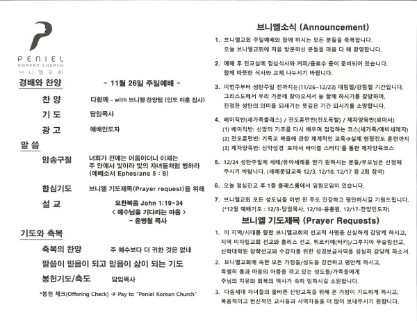 2023년 11월 26일 주보 페이지 정보 작성자 매릴랜드브니엘교회 댓글 0건 조회 600회 작성일 23-11-26 22:08 목록 본문 2023년 11월 26일 주보 이전글2023년 12월 3일 주보 23.12.05 다음글2023년 11월 19일 주보 23.11.21 댓글 0 댓글목록 등록된 댓글이 없습니다. 목록
