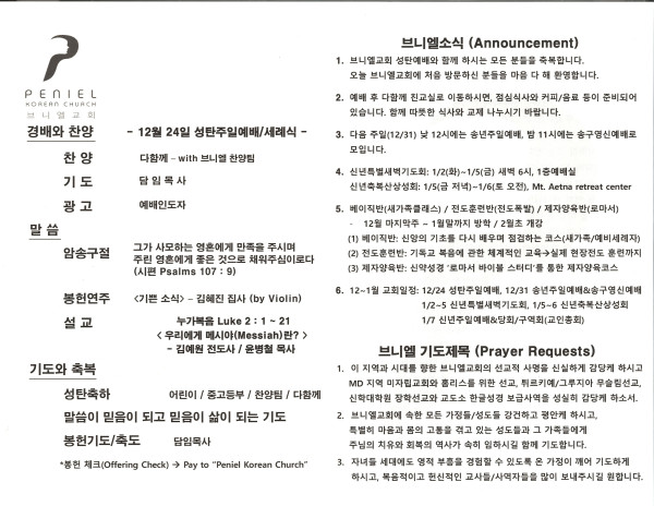 2023년 12월 24일 주보 페이지 정보 작성자 매릴랜드브니엘교회 댓글 0건 조회 667회 작성일 23-12-27 20:51 목록 본문 2023년 12월 24일 주보 이전글2023년 12월 31일 주보 24.01.02 다음글2023년 12월 17일 주보 23.12.20 댓글 0 댓글목록 등록된 댓글이 없습니다. 목록
