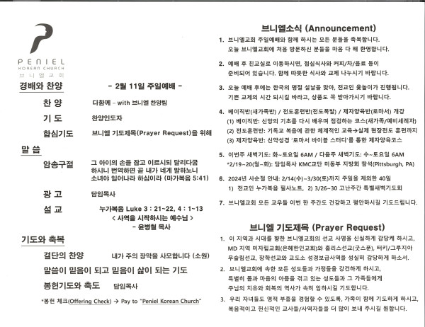 2024년 2월 11일 주보 페이지 정보 작성자 매릴랜드브니엘교회 댓글 0건 조회 628회 작성일 24-02-12 11:38 목록 본문 2024년 2월 11일 주보 이전글2024년 2월 18일 주보 24.02.19 다음글2024년 2월 4일 주보 24.02.04 댓글 0 댓글목록 등록된 댓글이 없습니다. 목록