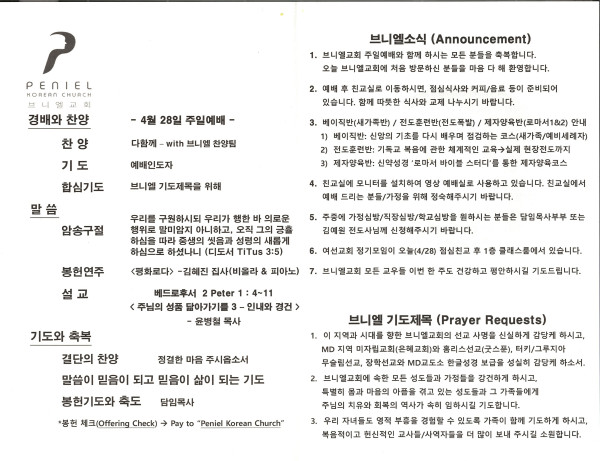 2024년 4월 28일 주보 페이지 정보 작성자 매릴랜드브니엘교회 댓글 0건 조회 622회 작성일 24-04-30 18:01 목록 본문 2024년 4월 28일 주보 이전글2024년 5월 5일 주보 24.05.06 다음글2024년 4월 21일 주보 24.04.21 댓글 0 댓글목록 등록된 댓글이 없습니다. 목록