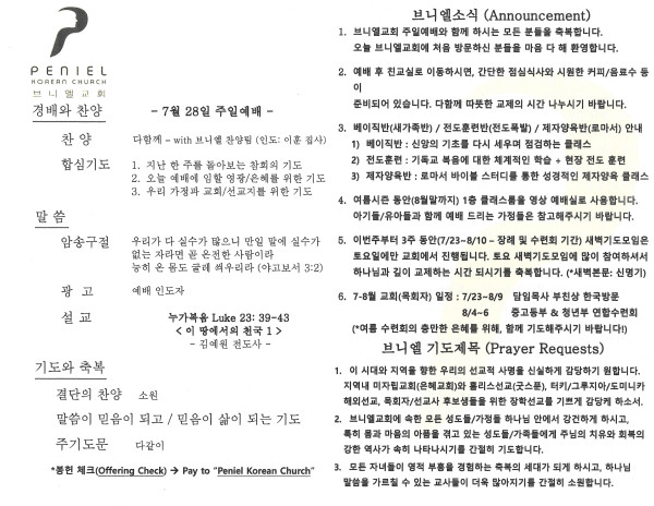 2024년 7월 28일 주보 페이지 정보 작성자 매릴랜드브니엘교회 댓글 0건 조회 411회 작성일 24-07-30 20:18 목록 본문 2024년 7월 28일 주보 이전글2024년 8월 11일 주보 24.08.11 다음글2024년 7월 21일 주보 24.07.21 댓글 0 댓글목록 등록된 댓글이 없습니다. 목록