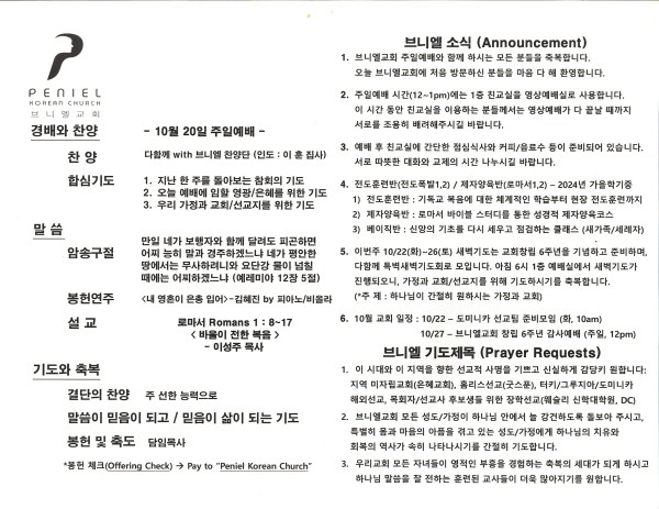 2024년 10월 20일 주보 페이지 정보 작성자 매릴랜드브니엘교회 댓글 0건 조회 447회 작성일 24-10-20 17:22 목록 본문 2024년 10월 20일 주보 이전글2024년 10월 27일 주보 24.10.27 다음글2024년 10월 13일 주보 24.10.14 댓글 0 댓글목록 등록된 댓글이 없습니다. 목록