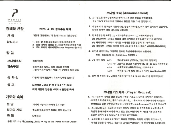 2025년 4월 13일 주보 페이지 정보 작성자 매릴랜드브니엘교회 댓글 0건 조회 459회 작성일 25-04-13 14:25 목록 본문 2025년 4월 13일 주보 이전글2025년 4월 20일 주보 25.04.20 다음글2025년 4월 6일 주보 25.04.06 댓글 0 댓글목록 등록된 댓글이 없습니다. 목록