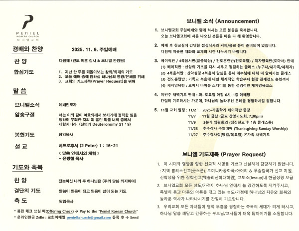 2025년 11월 9일 주보 페이지 정보 작성자 매릴랜드브니엘교회 댓글 0건 조회 86회 작성일 25-11-10 07:00 목록 본문 2025년 11월 9일 주보 이전글2025년 11월 16일 주보 25.11.17 다음글2025년 11월 2일 주보 25.11.02 댓글 0 댓글목록 등록된 댓글이 없습니다. 목록